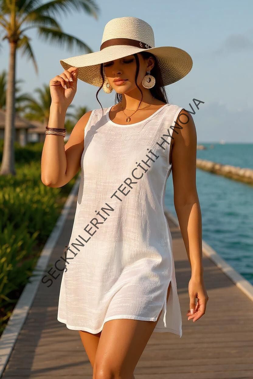 Kadın Beyaz Sırt Detaylı Yırtmaçlı Plaj Elbisesi Pareo – Şık, Rahat ve 4 Mevsim Kullanıma Uygun