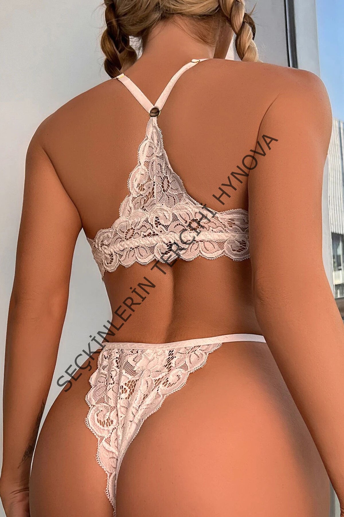 Kadın Beyaz Sırtı Dantel ve İp Detaylı Şık Sütyen Külot Takımı – Modern, Konforlu ve Günlük Kombinlere Uygun
