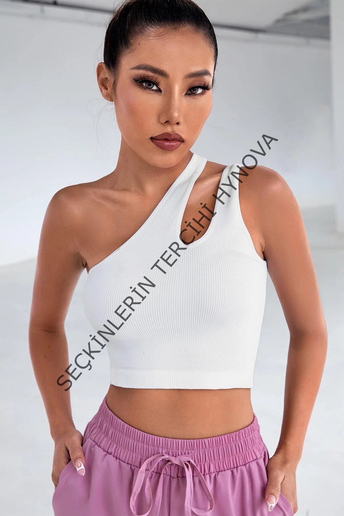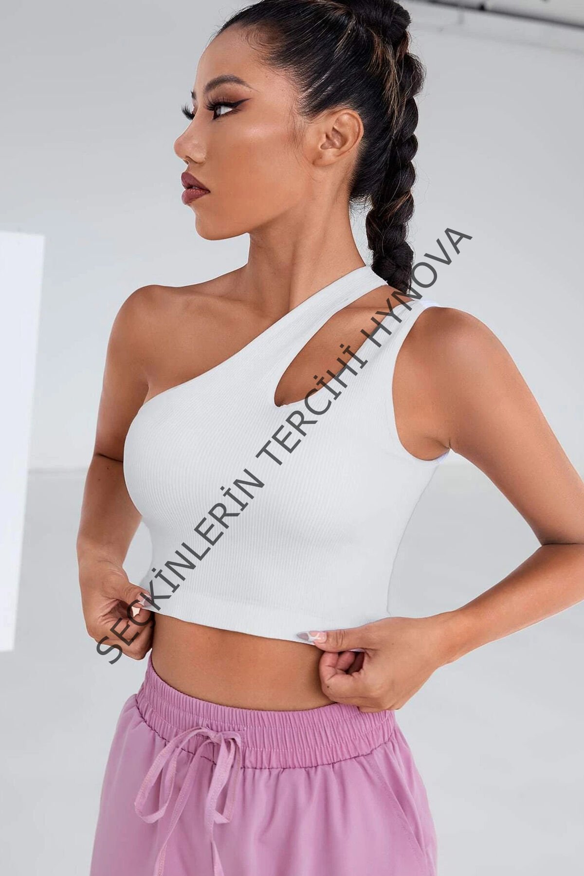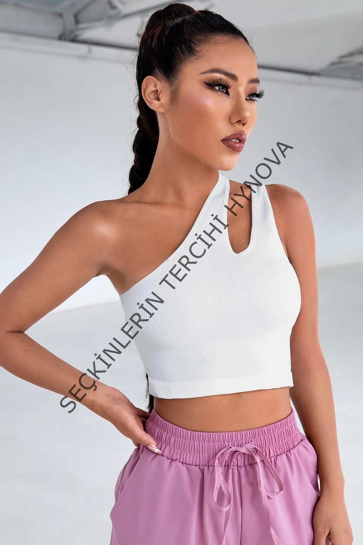 Kadın Beyaz Tek Omuz Cut Out Detaylı Crop Top Bluz – Şık, Rahat ve Kolay Kombinlenebilir