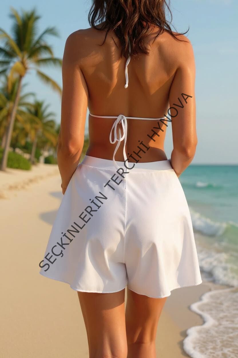 Kadın Beyaz Yırtmaçlı Etek Görünümlü Şık Deniz Şortu – Modern ve Şık Tasarım