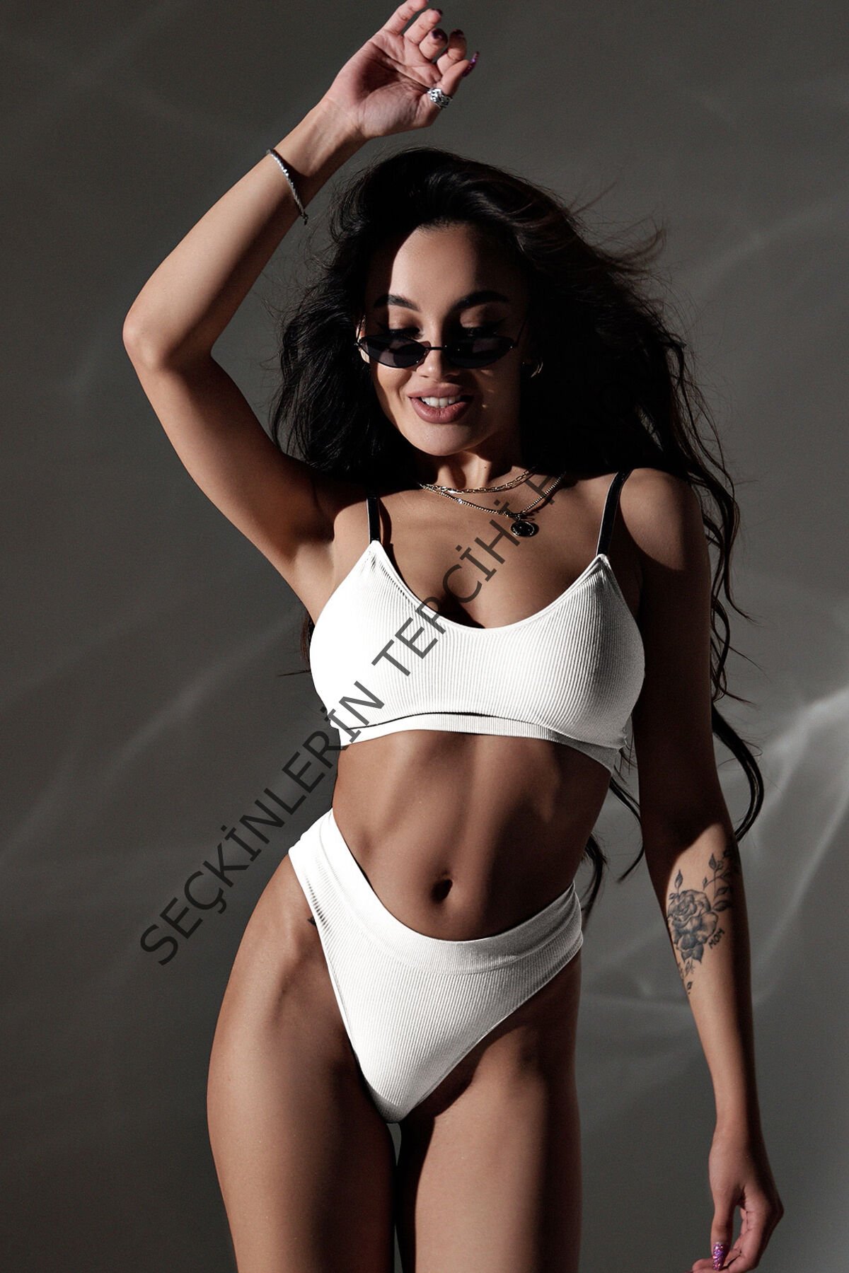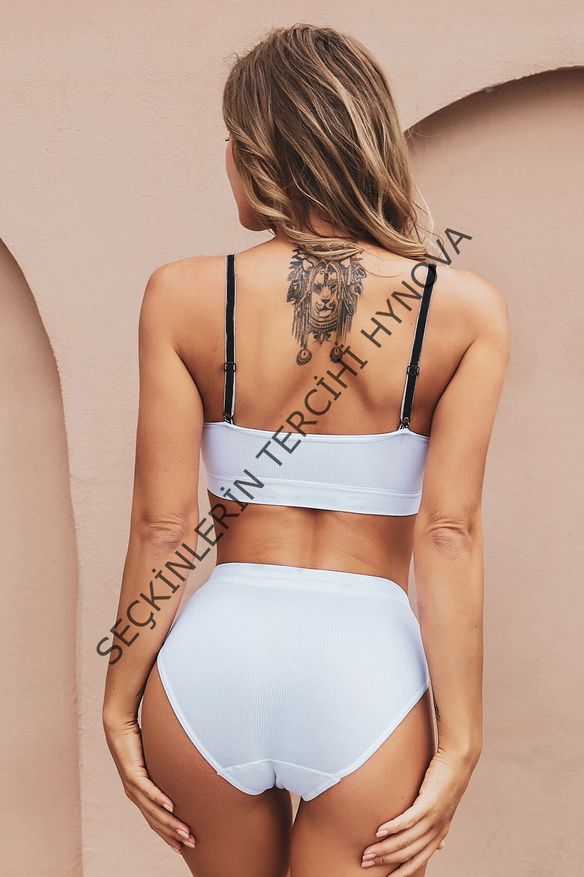 Kadın Beyaz Yüksek Bel Dolgusuz Sütyen Takımı – Modern, Konforlu ve Günlük Kombinlere Uygun