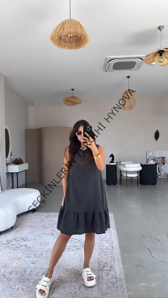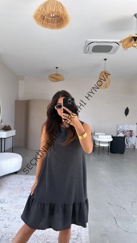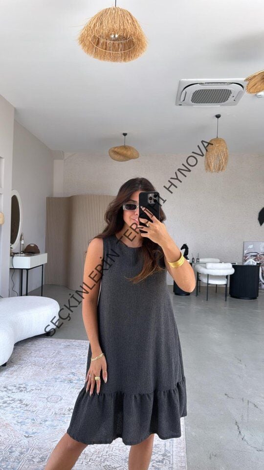 Kadın Bisiklet Yaka Eteği Volanlı Bürümcük Elbise