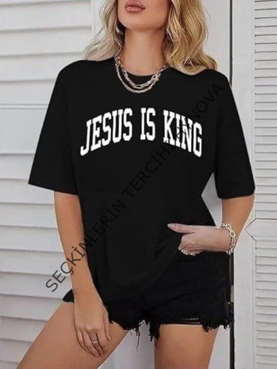 Kadın Bisiklet Yaka Kısa Kol Baskılı T-shirt - Siyah
