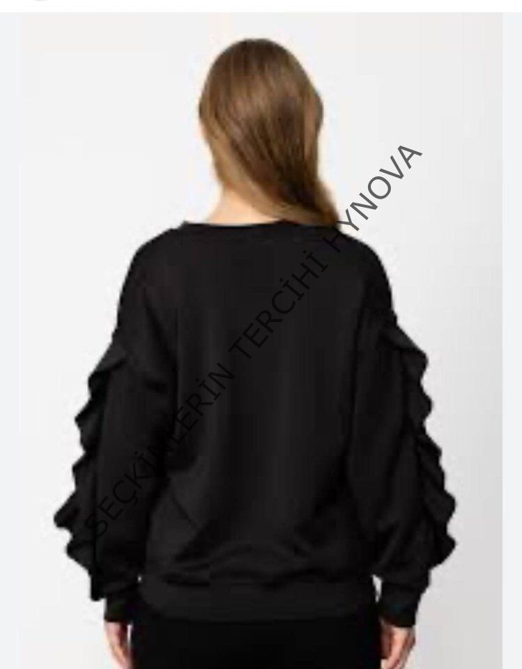 Kadın Bisiklet Yaka Kolları Volan Detay üç Iplik Kumaş Sweat
