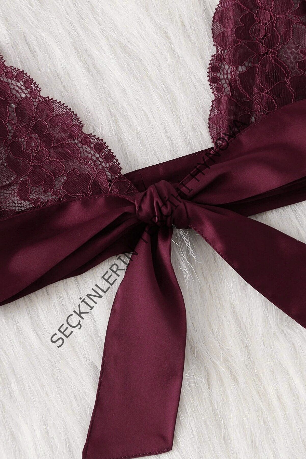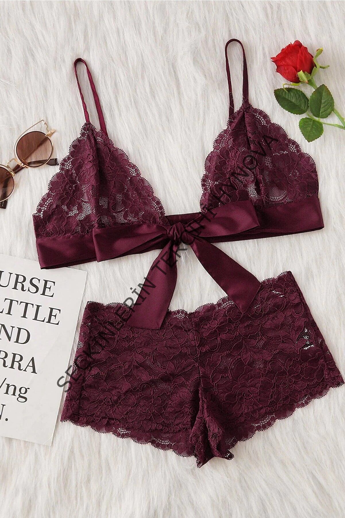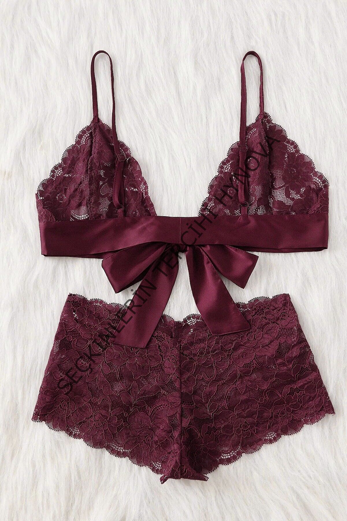 Kadın Bordo Dantelli & Kurdelalı Sütyen Külot Takımı – Modern, Konforlu ve Günlük Kombinlere Uygun