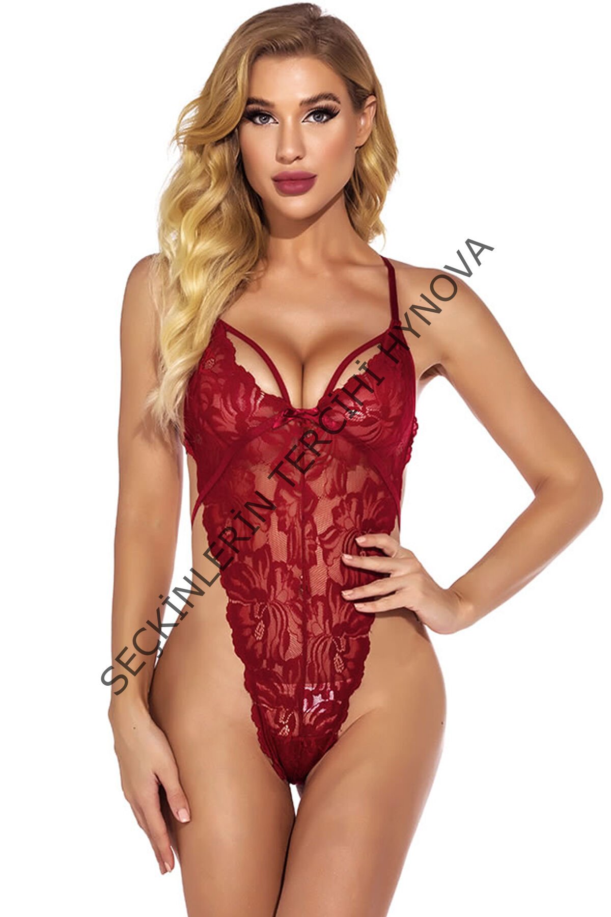 Kadın Bordo Dantelli, Tangalı ve İp Askılı Şık İç Çamaşır Takımı – Modern, Konforlu ve Günlük Kombinlere Uygun