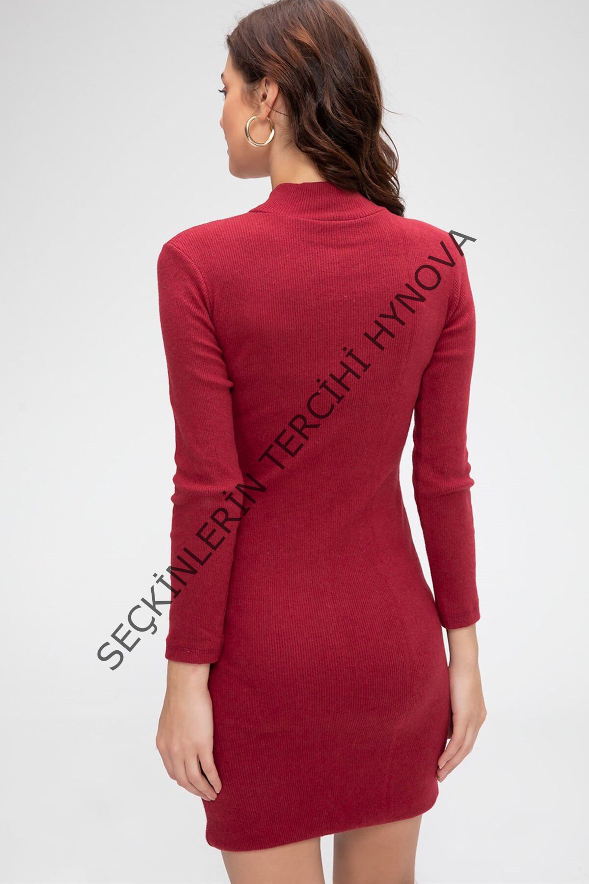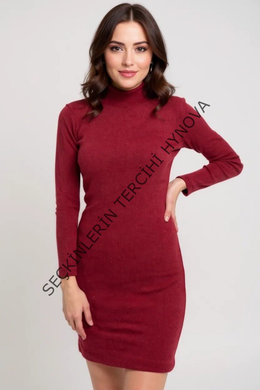 Kadın Bordo Kaşkorse Balıkçı Yaka Uzun Kollu Bodycon Mini Elbise – Şık, Rahat ve 4 Mevsim