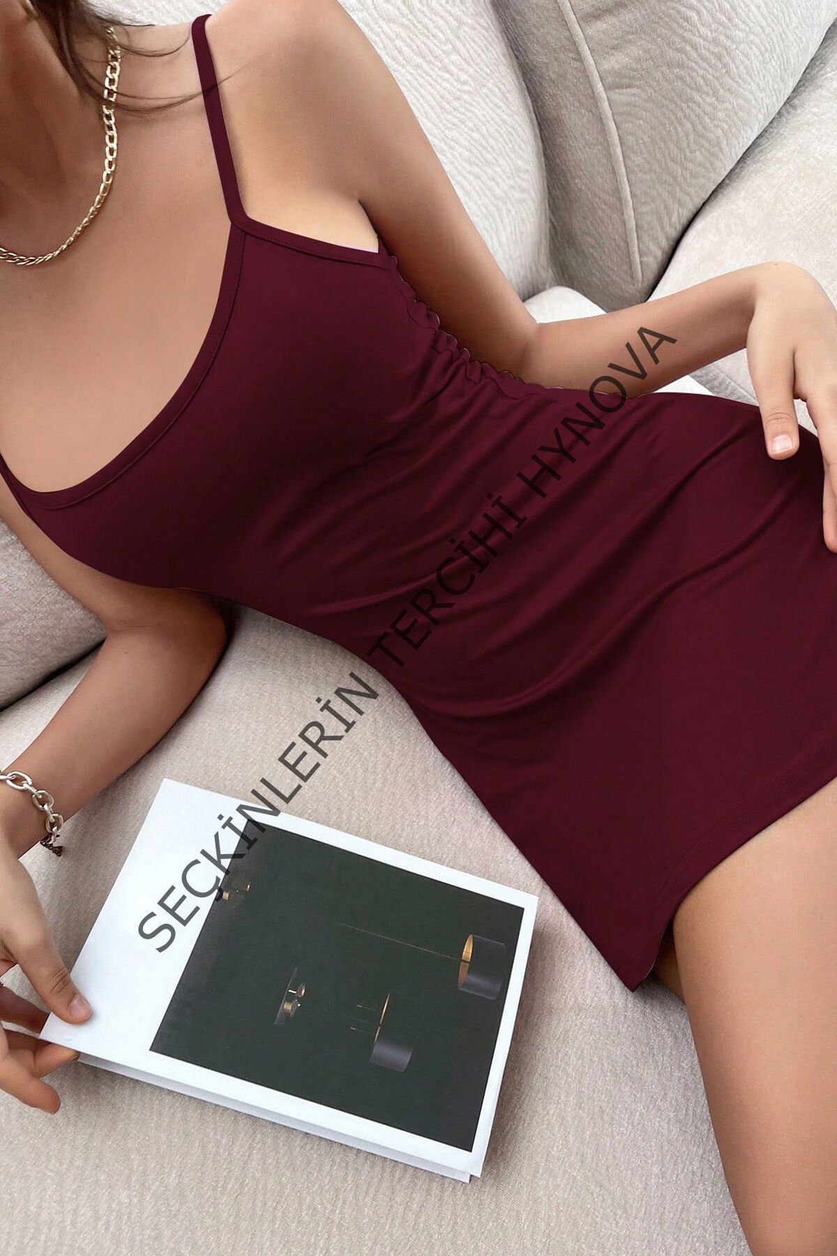 Kadın Bordo Sırt Kısmı Komple Dantelli Mini Gecelik – Modern ve Şık Tasarım