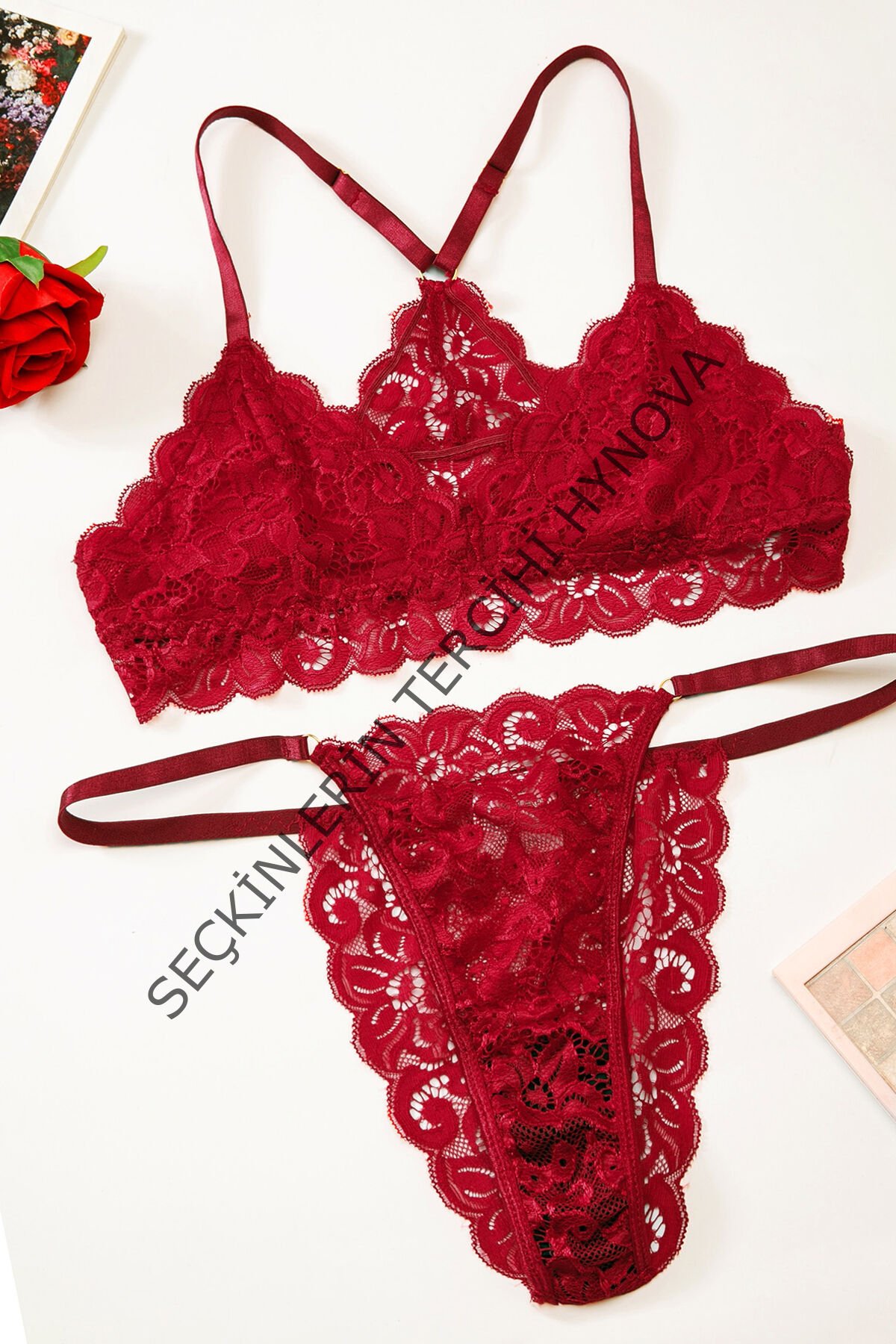 Kadın Bordo Sırtı Dantel ve İp Detaylı Şık Sütyen Külot Takımı – Modern, Konforlu ve Günlük Kombinlere Uygun