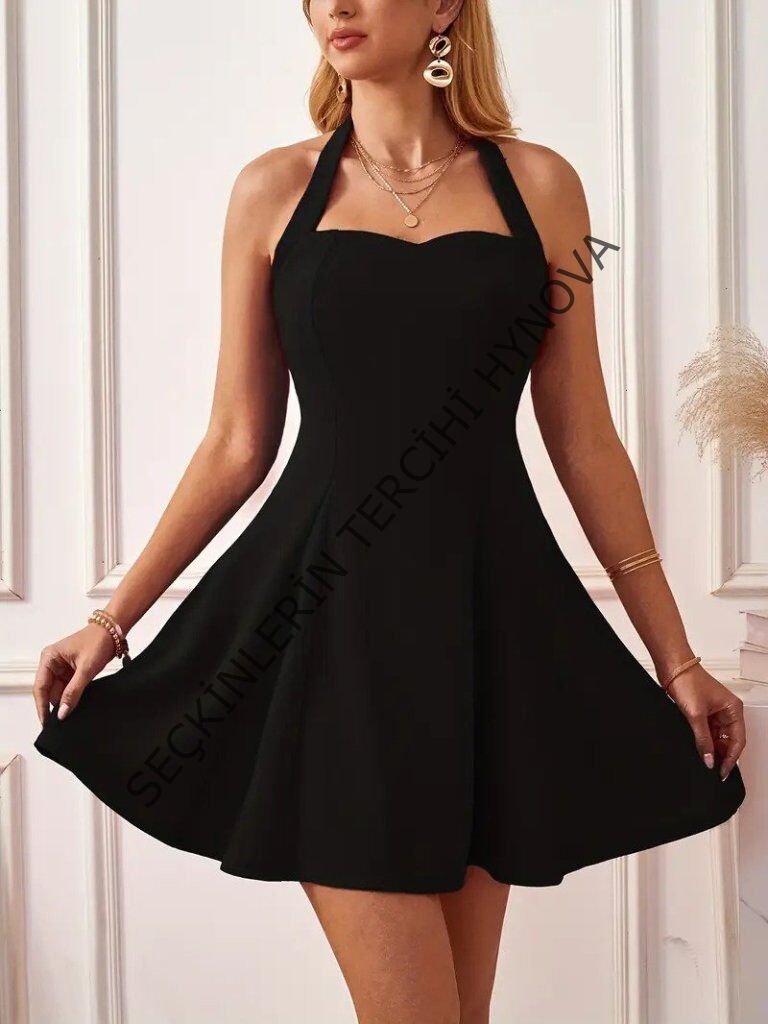 Kadın Boyundan Askılı Sırtı Açık Ithal Krep Mini Elbise