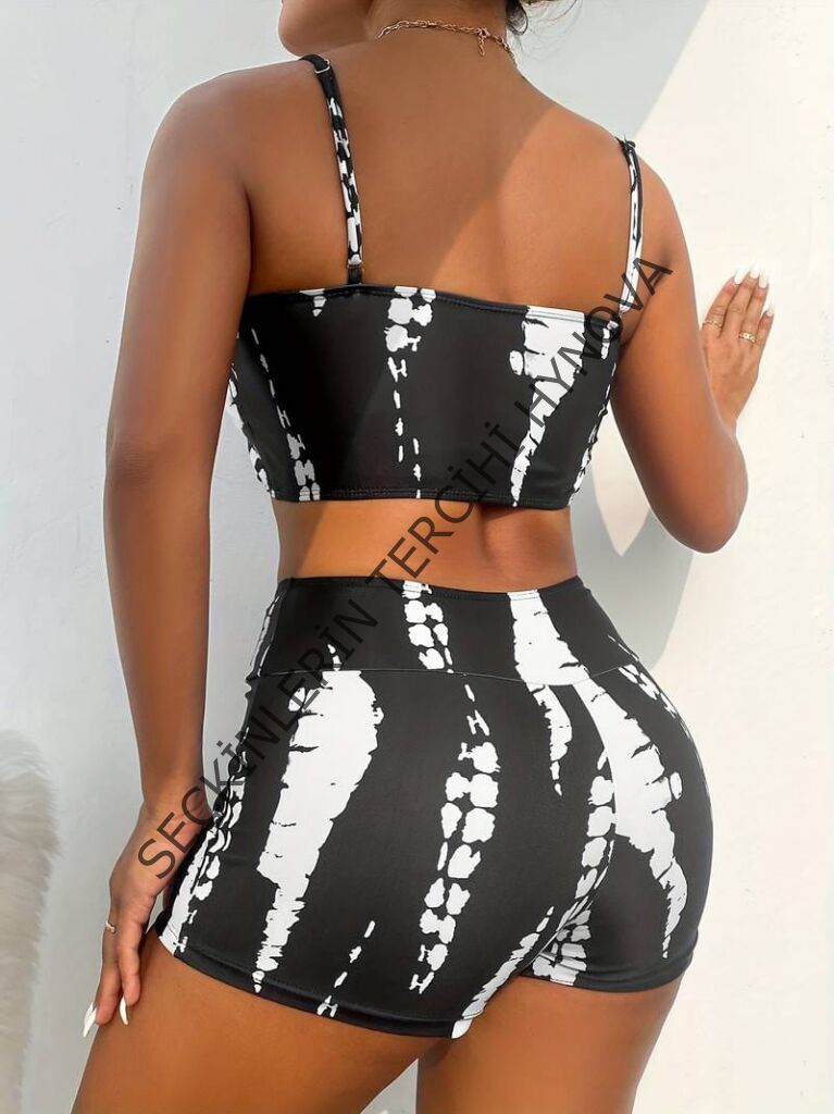 Kadın Büzgü Detay Askılı Crop Mini Tayt Ikili Takım