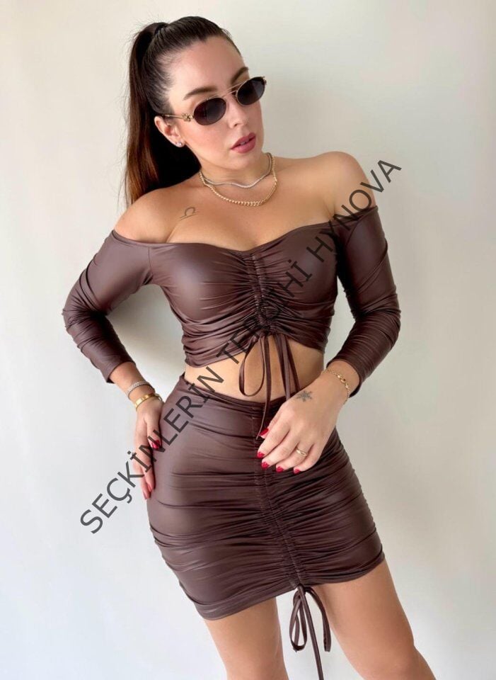 Kadın Büzgülü Deri Etek Takım Fırsat Ürün
