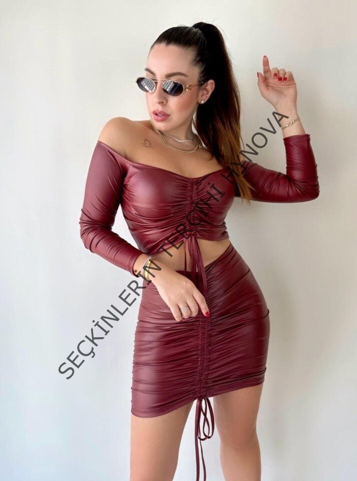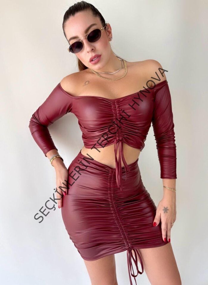 Kadın Büzgülü Deri Etek Takım Fırsat Ürün