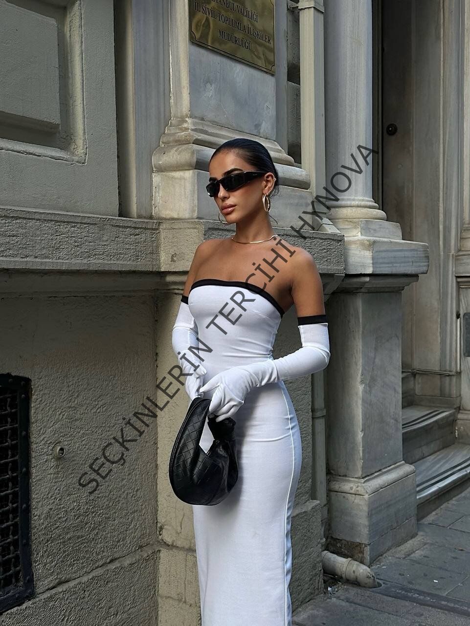 Kadın Dalgıç Kumaş Askısız Yırtmaç Detaylı Elbise