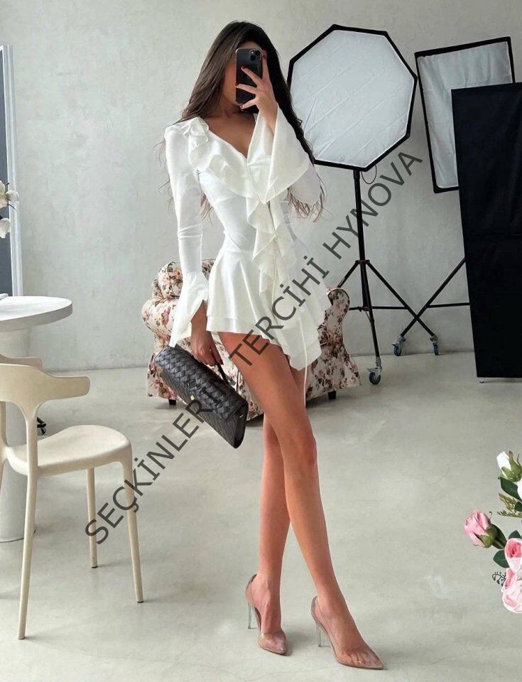 Kadın Dalgıç Kumaş Fırfırlı Elbise