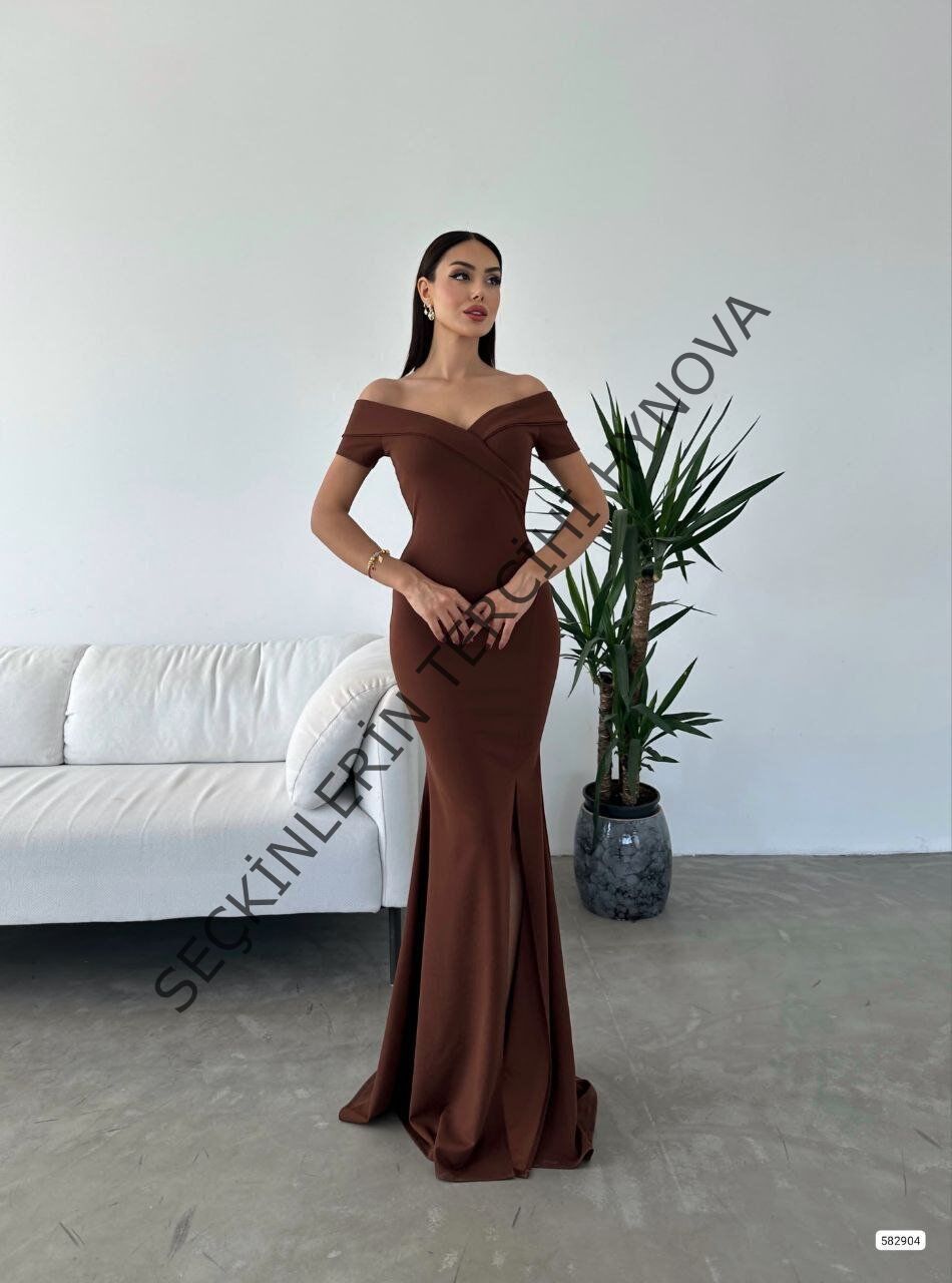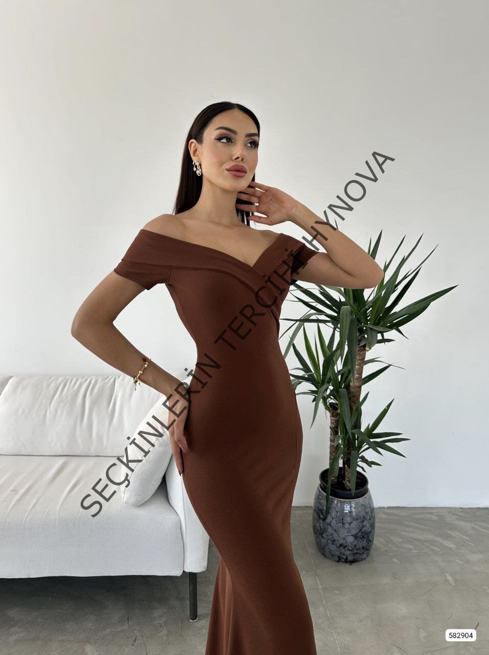Kadın Dalgıç Kumaş Kayık Yaka Ve Dekolte Detaylı Elbise