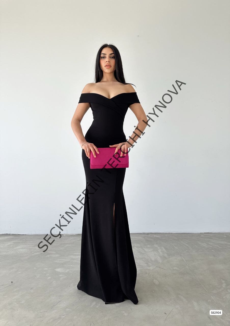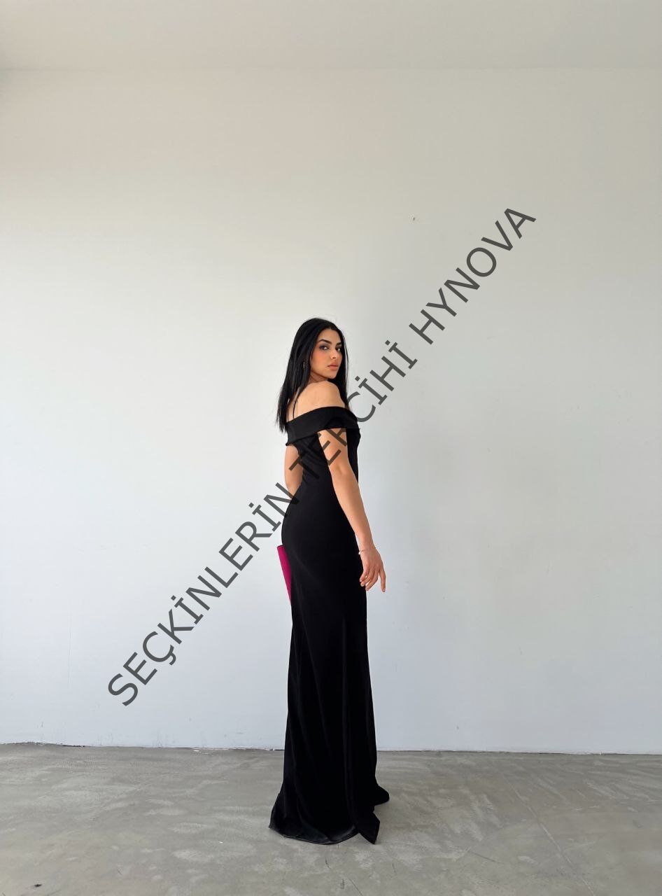 Kadın Dalgıç Kumaş Kayık Yaka Ve Dekolte Detaylı Elbise