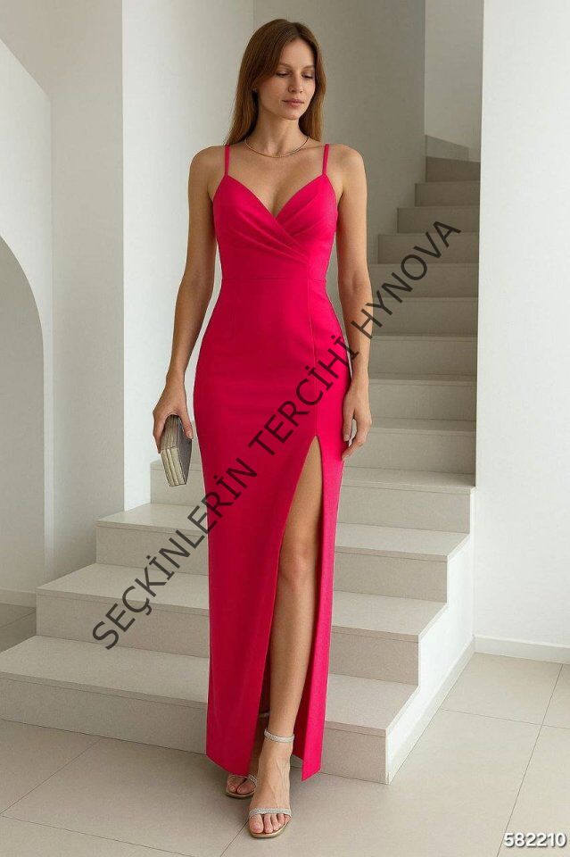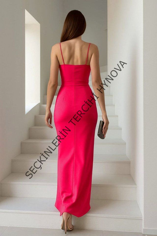 Kadın Dalgıç Kumaş V Yaka Yırtmaç Detaylı Maxi Boy Elbise