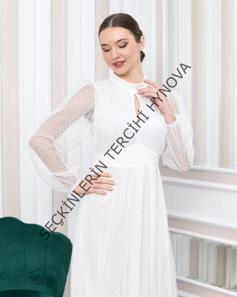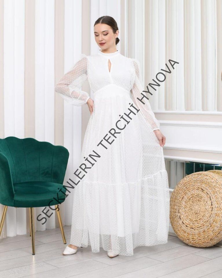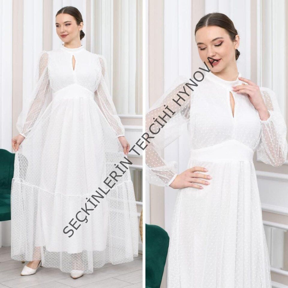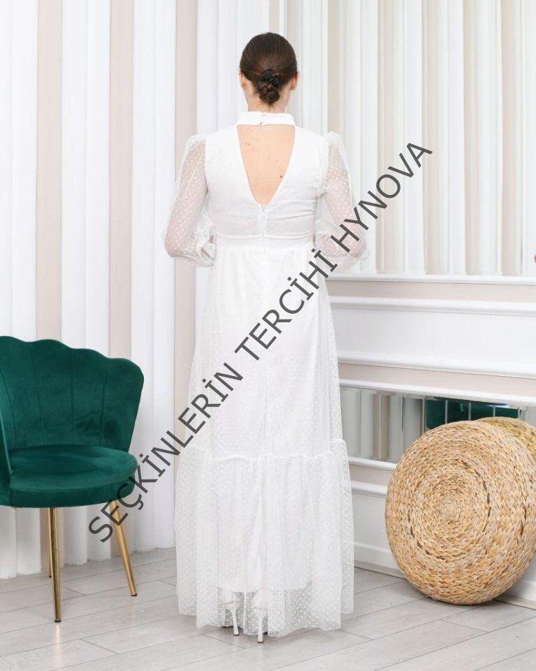 Kadın Damla Yaka Sırt Dekolteli Astarlı Tül Elbise