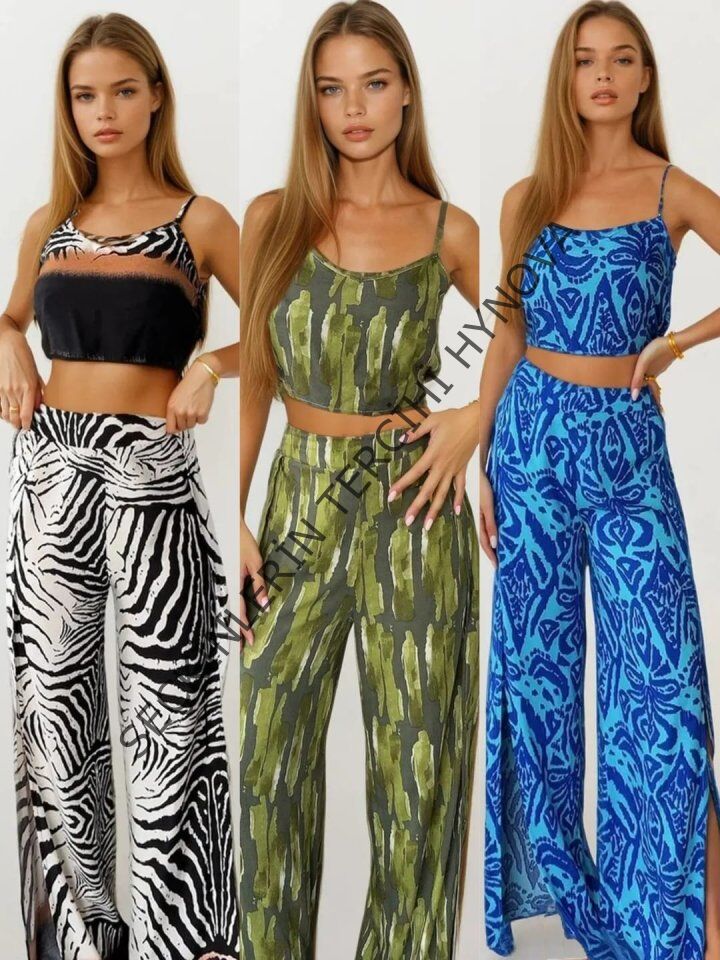 Kadın Dokuma Viskon Yırtmaç Detaylı Takım