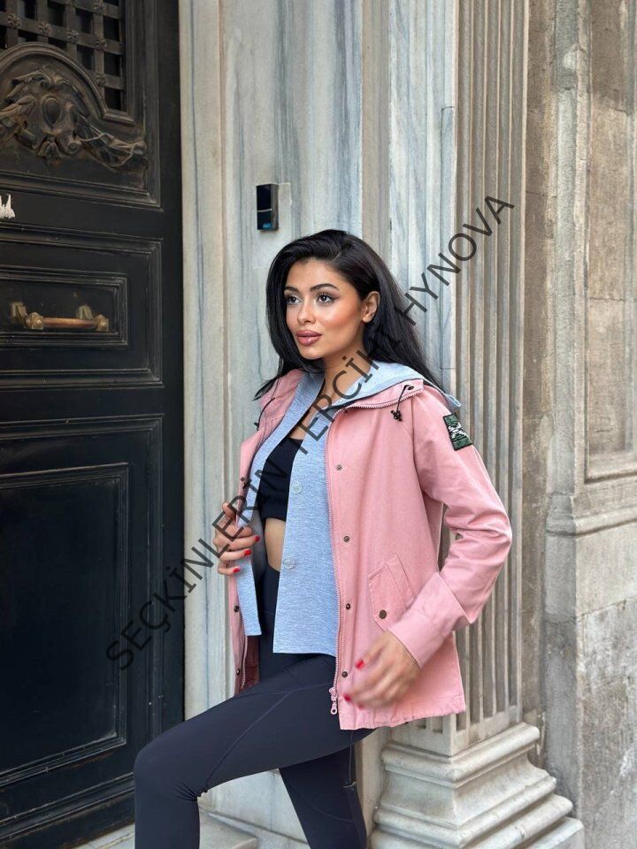 Kadın Ek Parça Kapüşon Kol Arma Detay Gabardin Ceket 176890