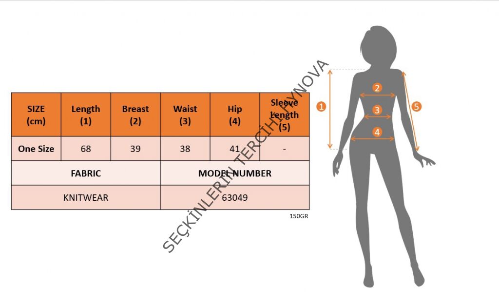 Modelin Ölçüleri: Boy:165, Kg:55, Göğüs:90, Bel:72, Kalça: 100