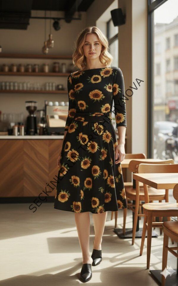Kadın Fakir Kol Bisiklet Yaka Midi Mikro Elbise
