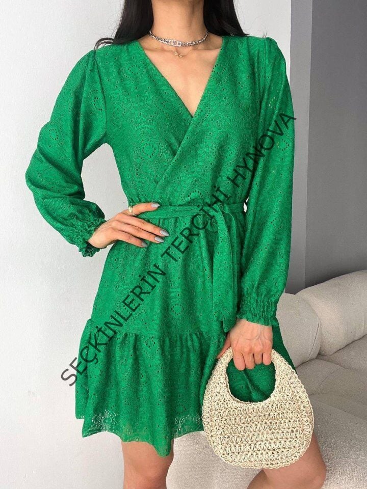 Kadın Fırsat ürünü Kruvaze Yaka Güpürlü Mini Elbise