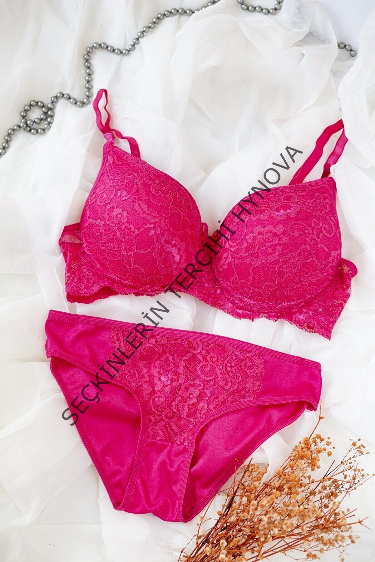 Kadın Fuşya Dolgulu Dantel Sütyen Ve Külot Takım – Modern, Konforlu ve Günlük Kombinlere Uygun