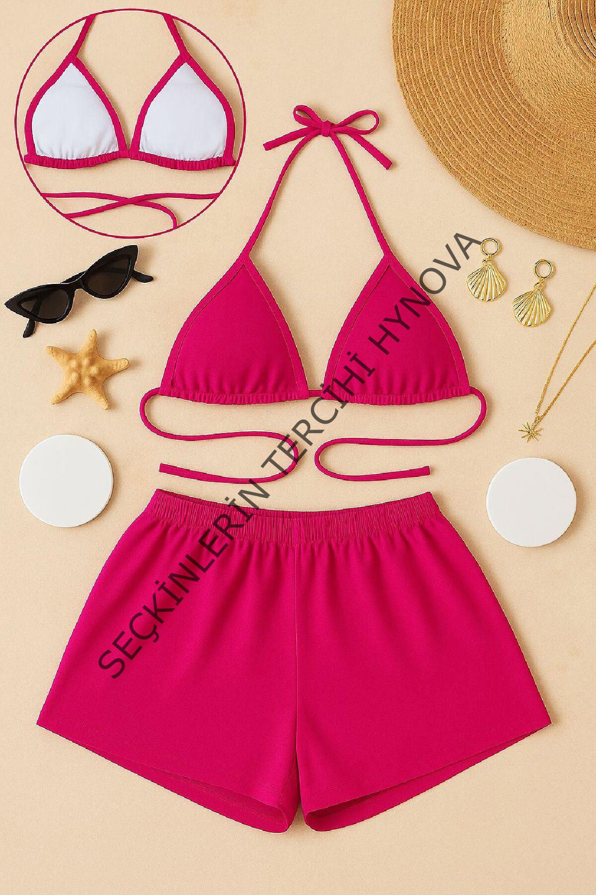 Kadın Fuşya Şortlu Belden ve Boyundan Bağlamalı Bikini Takımı – Modern, Konforlu ve Günlük Kombinlere Uygun