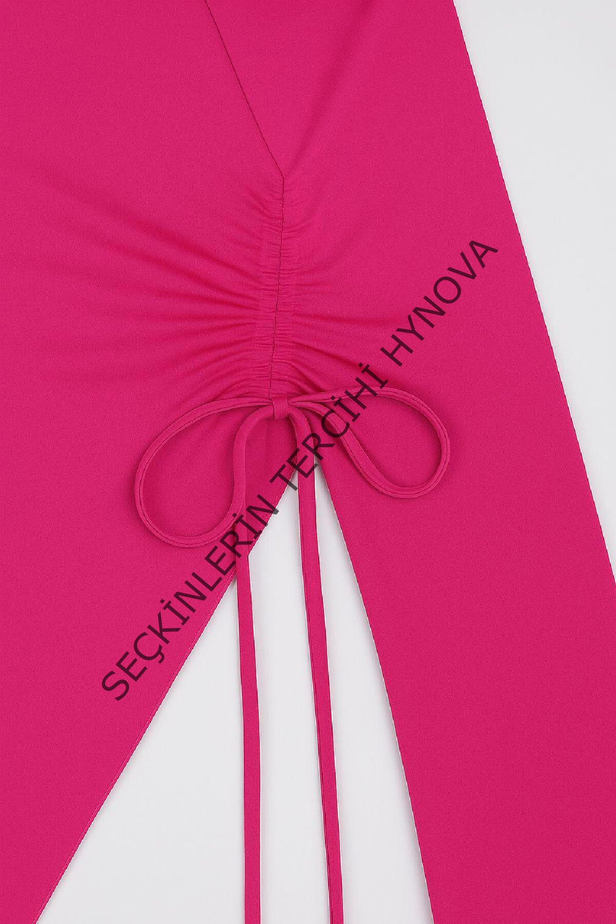 - İddialı ama zarif bir görünüm isteyenler için Kadın Fuşya Asimetrik Yaka Drapeli Yan Bağlamalı Bluz, gardırobun en enerjik parçalarından biri olacak.