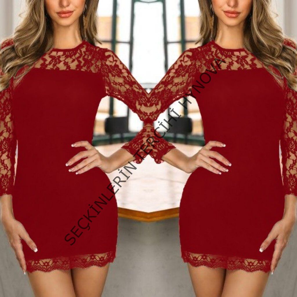 Kadın Göğüs Yukarısı Sırt Ve Kol Tül Detay Krep Mini Elbise