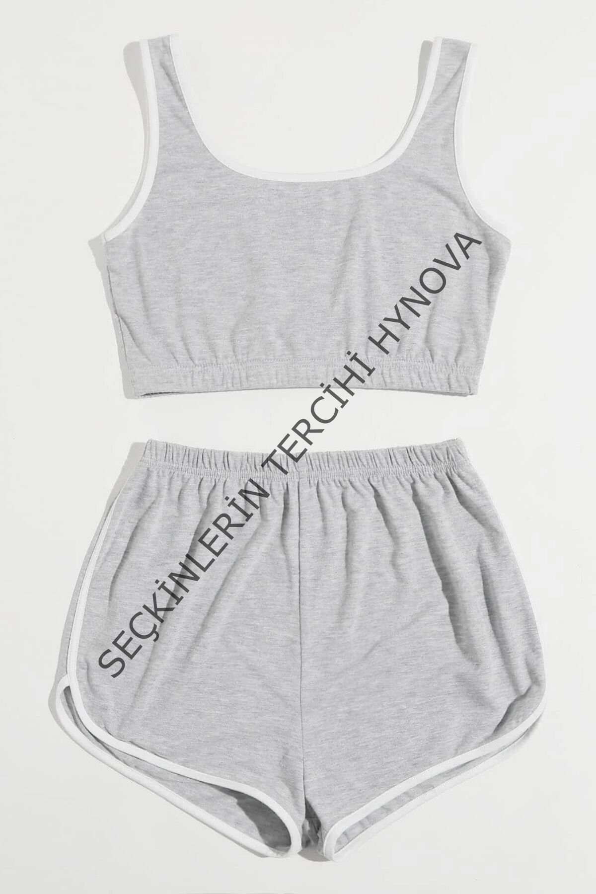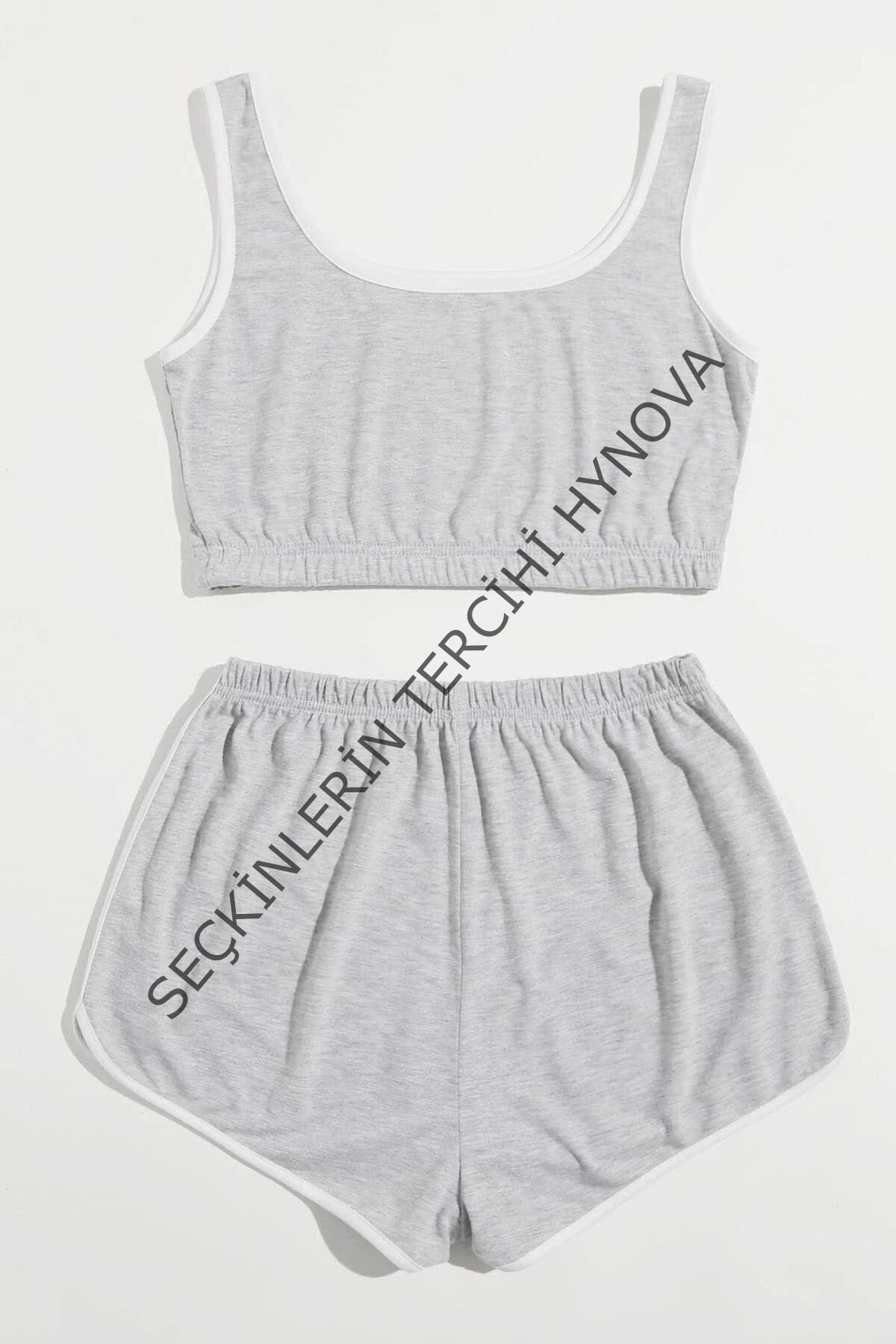 Kadın Gri Askılı Crop Top ve Şortlu Gecelik Takım