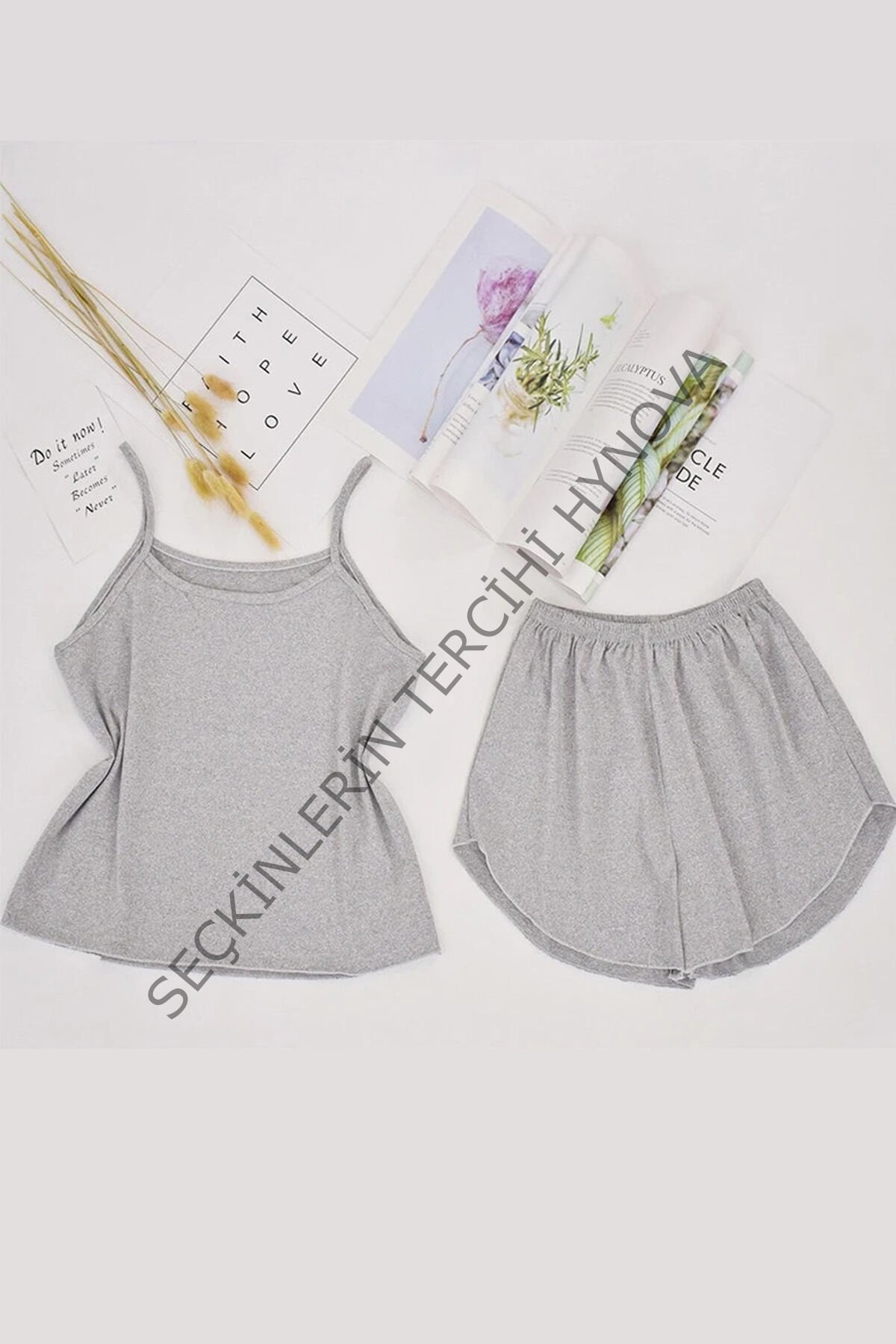 Kadın Gri Şortlu Penye Gecelik Takımı – Modern, Konforlu ve Günlük Kombinlere Uygun