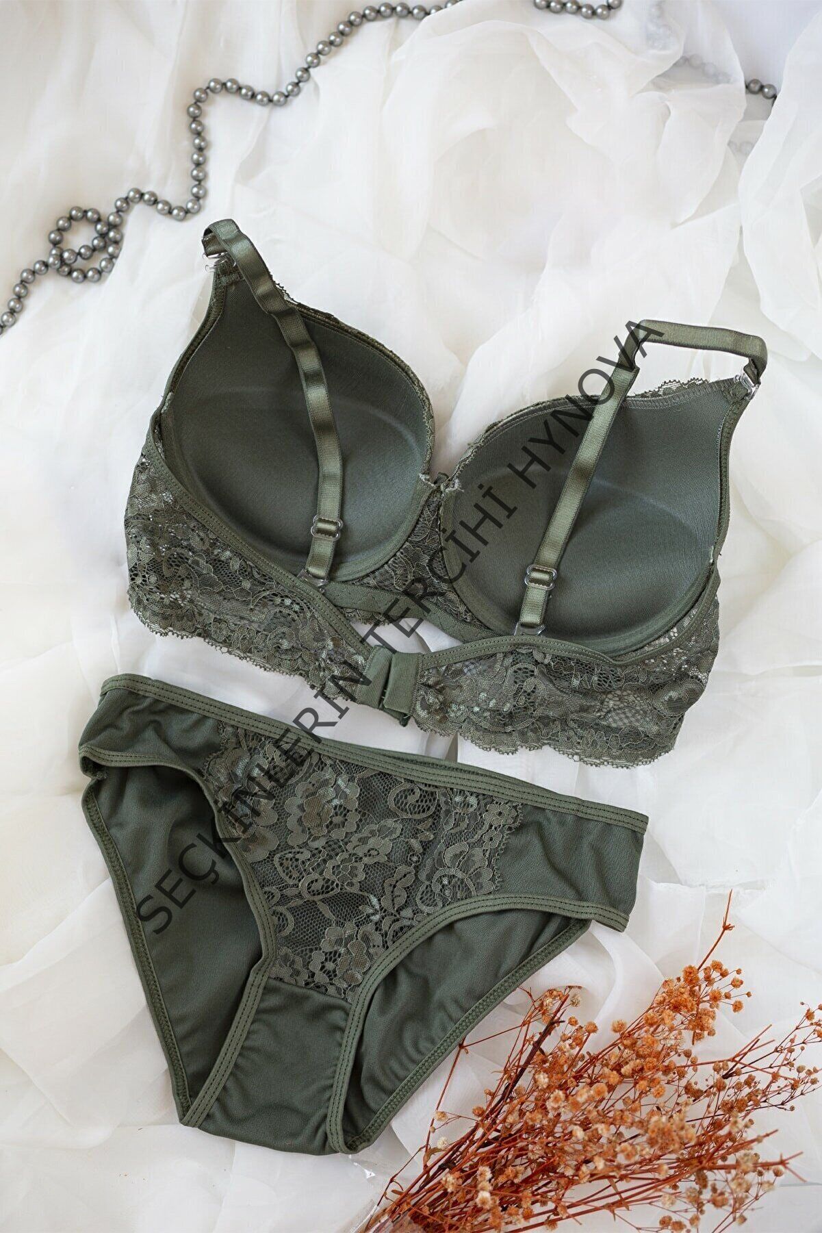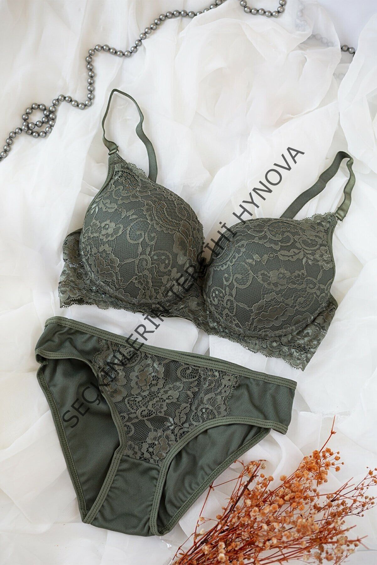 Kadın Haki Yeşili Dolgulu Dantel Sütyen Ve Külot Takım – Modern, Konforlu ve Günlük Kombinlere Uygun