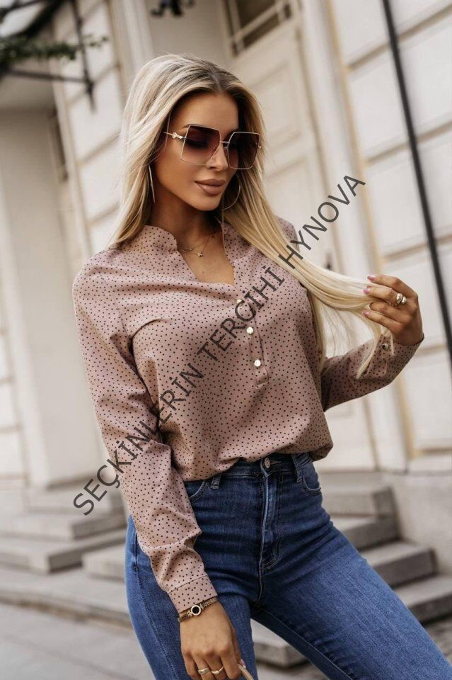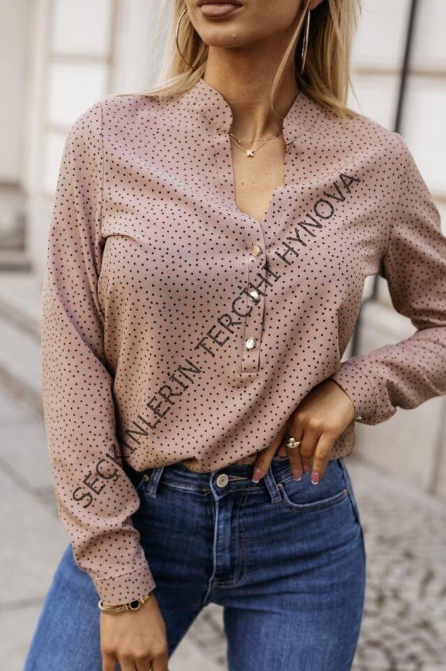 Kadın Hakim Yaka Metal Düğmeli Moskrep Kumaş Bluz