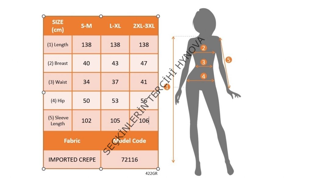 Modelin Ölçüleri: Boy:165, Kg:55, Göğüs:90, Bel:72, Kalça: 100