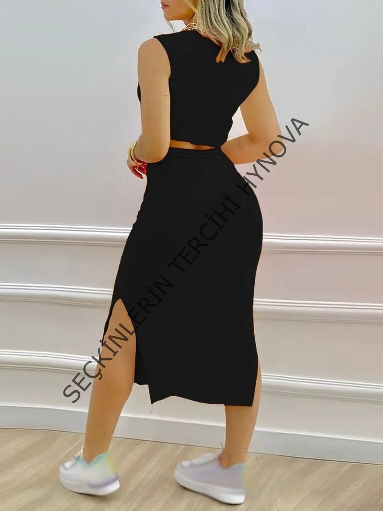 Kadın Iki Iplik Crop Etek Ikili Takım