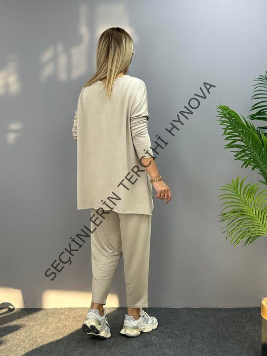 Kadın Iki Iplik Viskon Pamuk Kumaş Arma Detaylı Ikili Takım