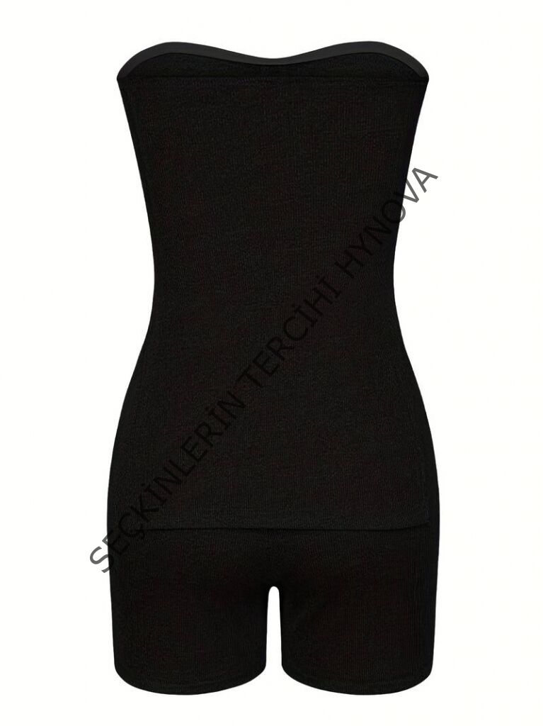 Kadın Iki Yanı Yırtmaçlı Straplez Bluzmini Tayt Kaşkorse Ikili Takım