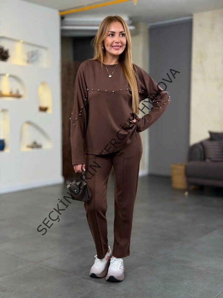 Kadın Inci Detay Modal Kumaş Ikili Takım