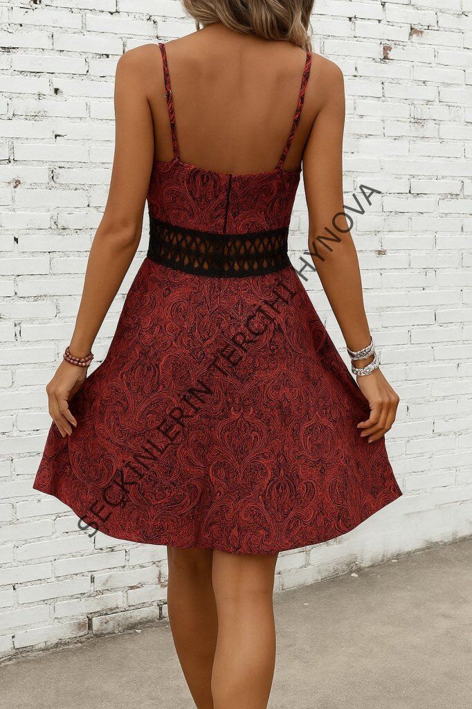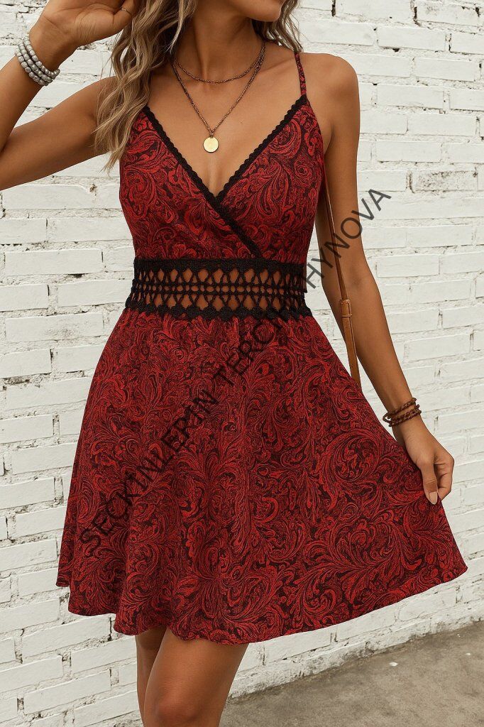 Kadın Ip Askılı Kruvaze Yakalı Desenli Mini Süprem Mini Elbise