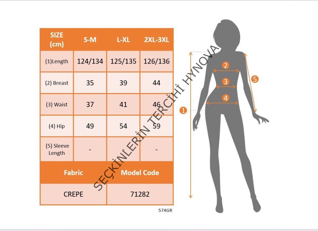 Modelin Ölçüleri: Boy:165, Kg:55, Göğüs:90, Bel:72, Kalça: 100