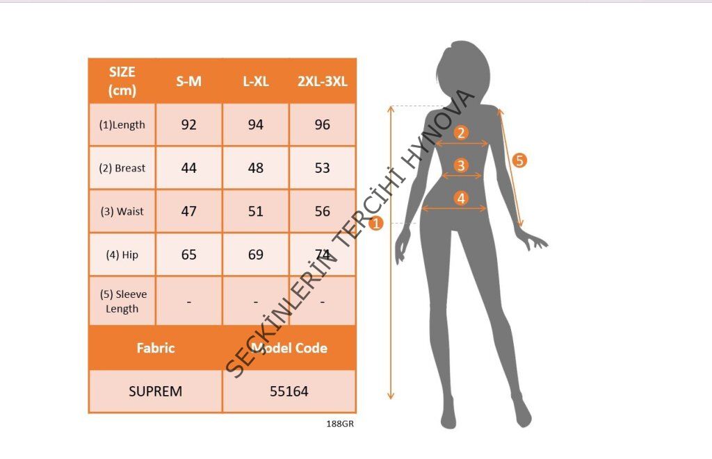 Modelin Ölçüleri: Boy:165, Kg:55, Göğüs:90, Bel:72, Kalça: 100