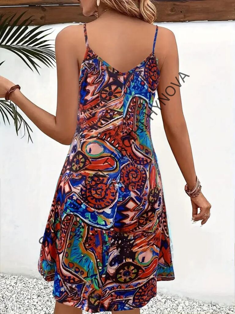 Kadın Ip Askılı V Yakalı Desenli Kısa Süprem Elbise
