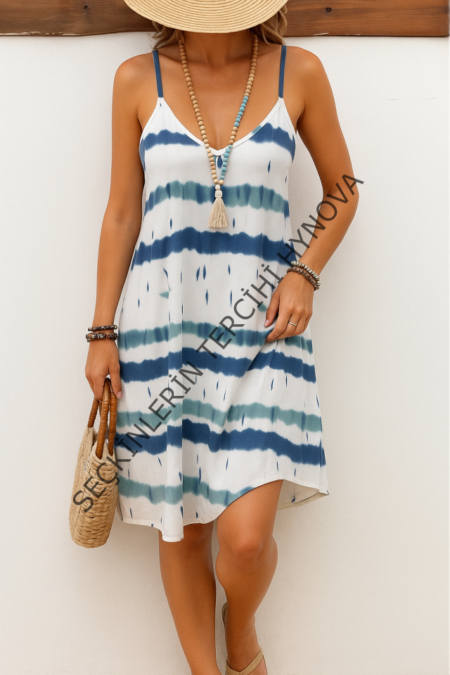 Kadın Ip Askılı V Yakalı Karışık Renkli Süprem Elbise