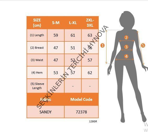 Modelin Ölçüleri: Boy:165, Kg:55, Göğüs:90, Bel:72, Kalça: 100