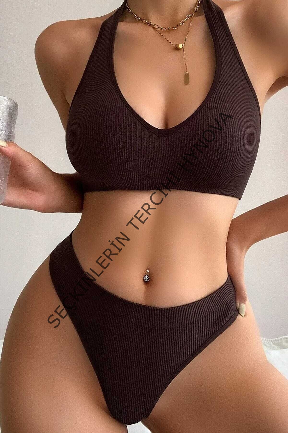 Kadın Kahverengi Seamless Tanga Sütyen Takım – Modern, Konforlu ve Günlük Kombinlere Uygun