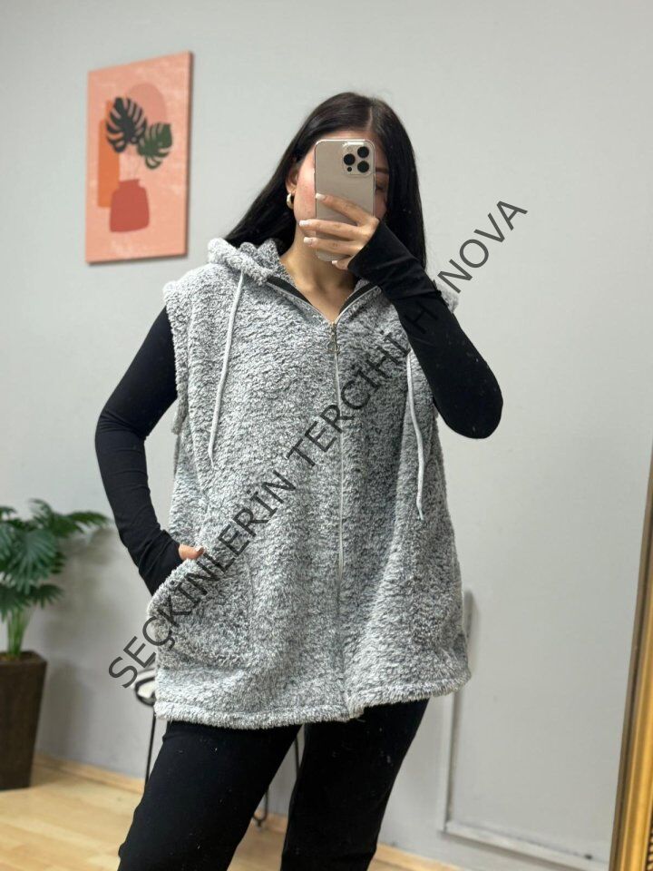 Kadın Kapüşon Ve Fermuar Detay Welsoft Kolsuz Yelek 175028
