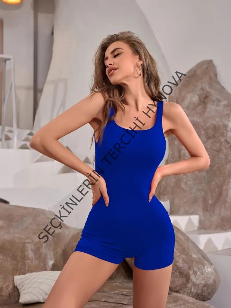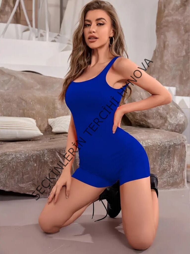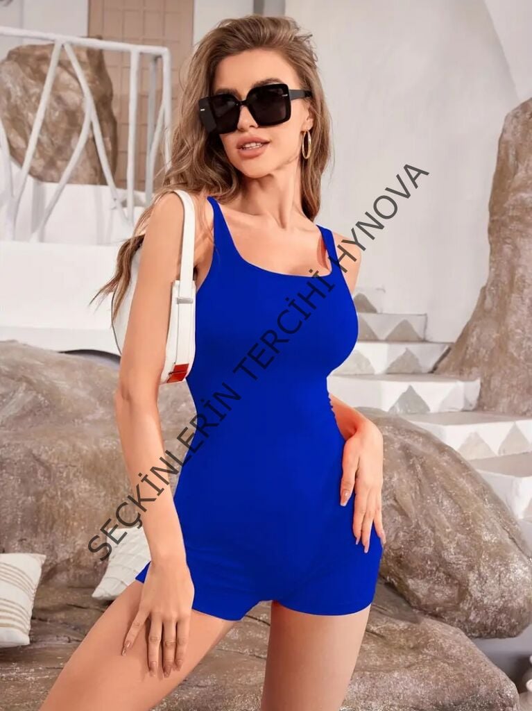Kadın Kare Yaka Sırt Dekolte Detay Dalgıç Bodycon Mini Tulum